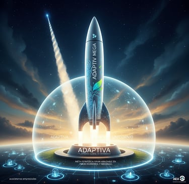 Meta Estratégica Gran Ambición: Convertir a ADAPTIVA en la plataforma de referencia mundial para la integración e intercambio de innovación, tecnología y sostenibilidad dentro de los ecosistemas empresariales, alcanzando el estatus de empresa unicornio y generando un impacto positivo perdurable en la economía y la sociedad.