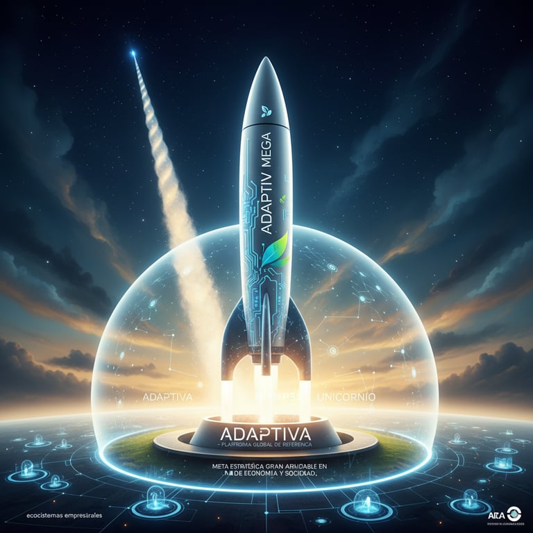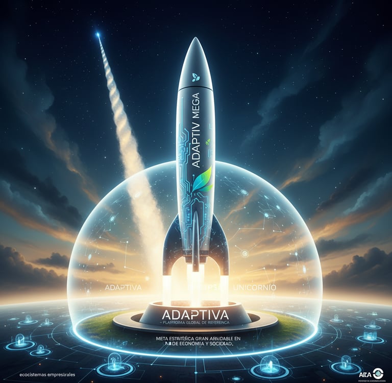 Meta Estratégica Gran Ambición: Convertir a ADAPTIVA en la plataforma de referencia mundial para la integración e intercambio de innovación, tecnología y sostenibilidad dentro de los ecosistemas empresariales, alcanzando el estatus de empresa unicornio y generando un impacto positivo perdurable en la economía y la sociedad.